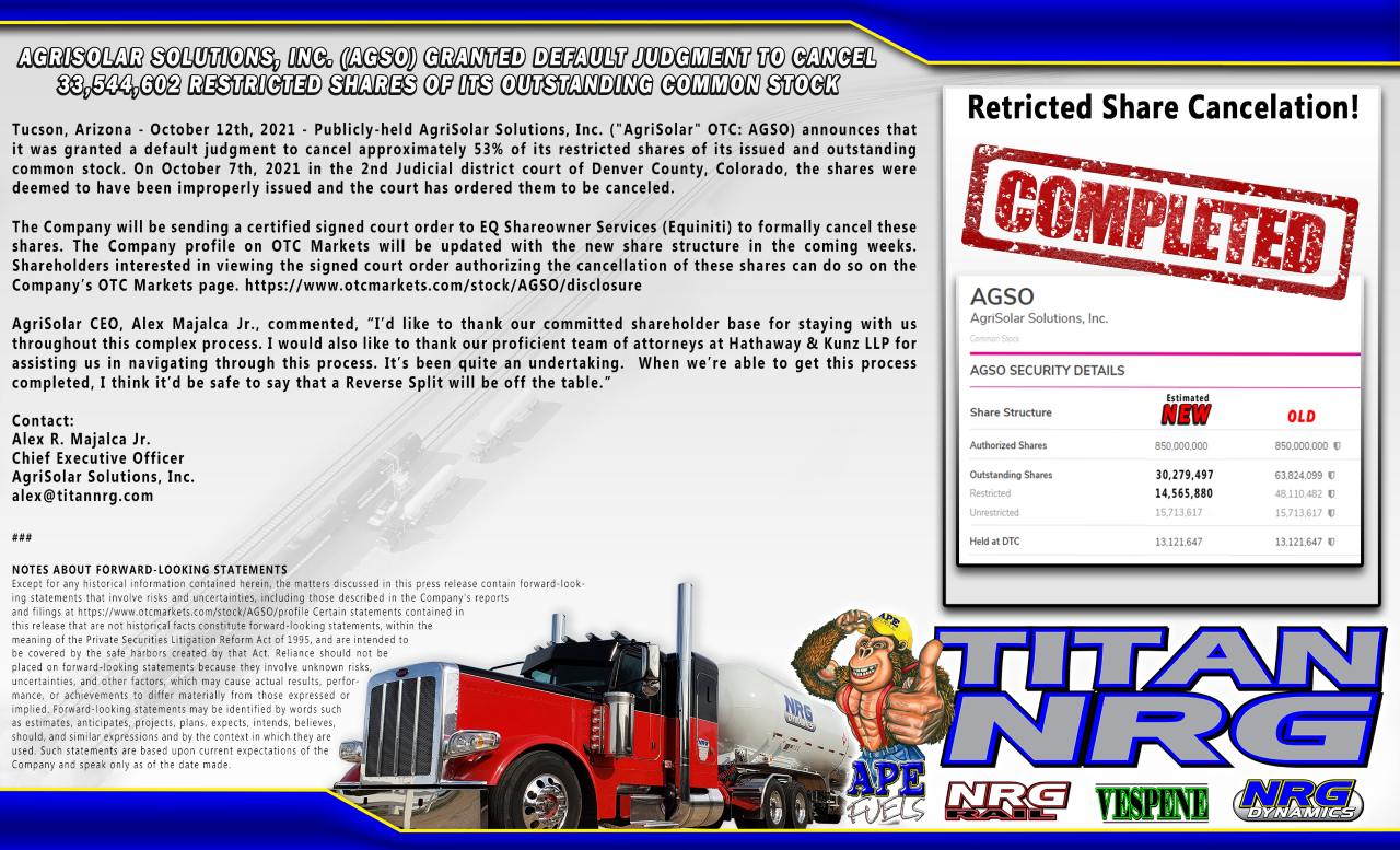 Agrisolar Solutions Inc Agso Granted Default Judgment